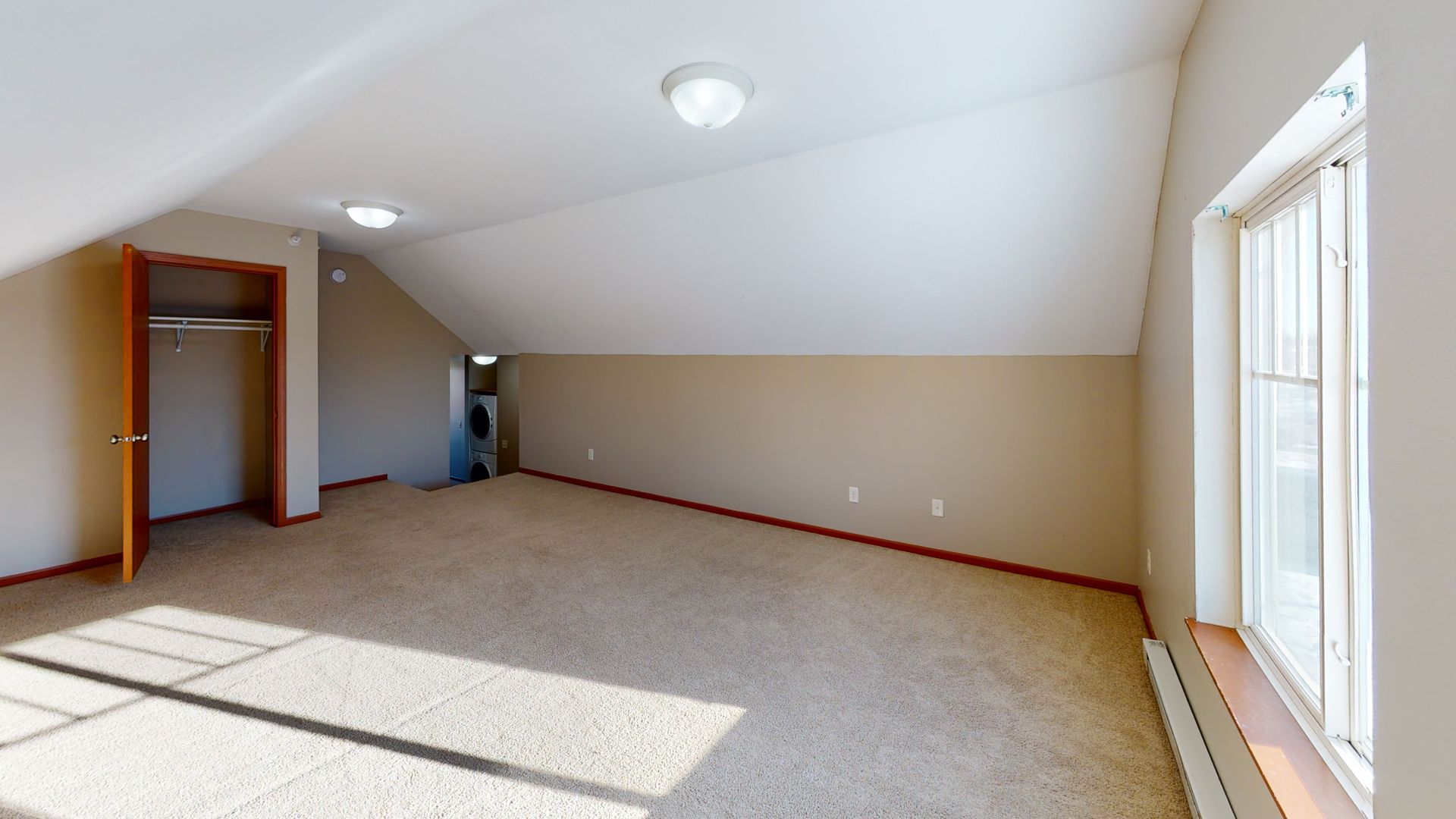 Down the hall you will find two spacious bedrooms, both with walk in closets. Next to the bedrooms is the bathroom and across would be the already provided stackable washer and dryer. This home would also come with a large bonus loft room.